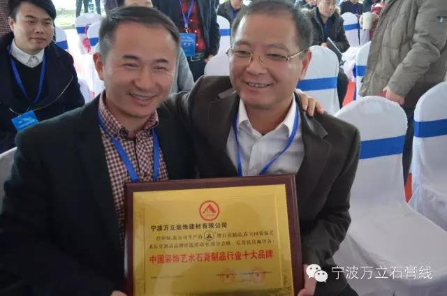 2015年12月21日 宁波万立公司成为中国石膏制品行业十大品牌,协会授予标