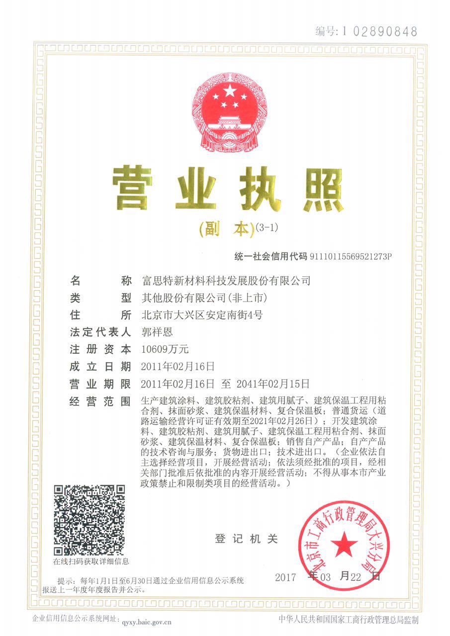 富思特新材料科技发展股份有限公司始创于1995年,是集建筑涂料、保温、保温装饰板、柔石、纳米新材料、地坪的研发、生产、销售和施工技术服务为一体的大型现代化企业,是中国建筑工程领域涂料保温一体化解决方案专业供应商。24年来,凭借“精准、精专、精进”的理念,专注于精品建筑外墙装饰完美效果的研究与应用,产品研发与生产综合实力全行业领先。目前拥有6大产品体系、7大生产基地、50余家分支机构。