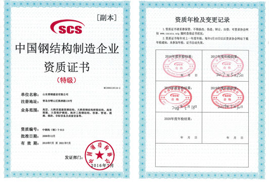 山东莱钢建设有限公司是山东钢铁集团旗下莱钢集团的全资子公司,注册资本10.26亿元人民币。 公司总部位于青岛,在山东省内的济南、青岛、威海以及上海、广东、山西设有区域公司,并设有9家子公司,参股4家公司。现有员工3000余人,主要从事投融资、工程总承包、钢结构装配式建筑、建筑设计、物流贸易、集成房屋等业务。 拥有房屋建筑工程施工总承包壹级、冶炼工程施工总承包壹级、机电安装工程施工总承包壹级、钢结构工程专业承包壹级资质、钢结构制造特级资质,建筑行业甲级设计资质、市政公用工程施工总承包、铁路施工总承包、装修装饰工程等多项资质,拥有对外承包工程经营资格。