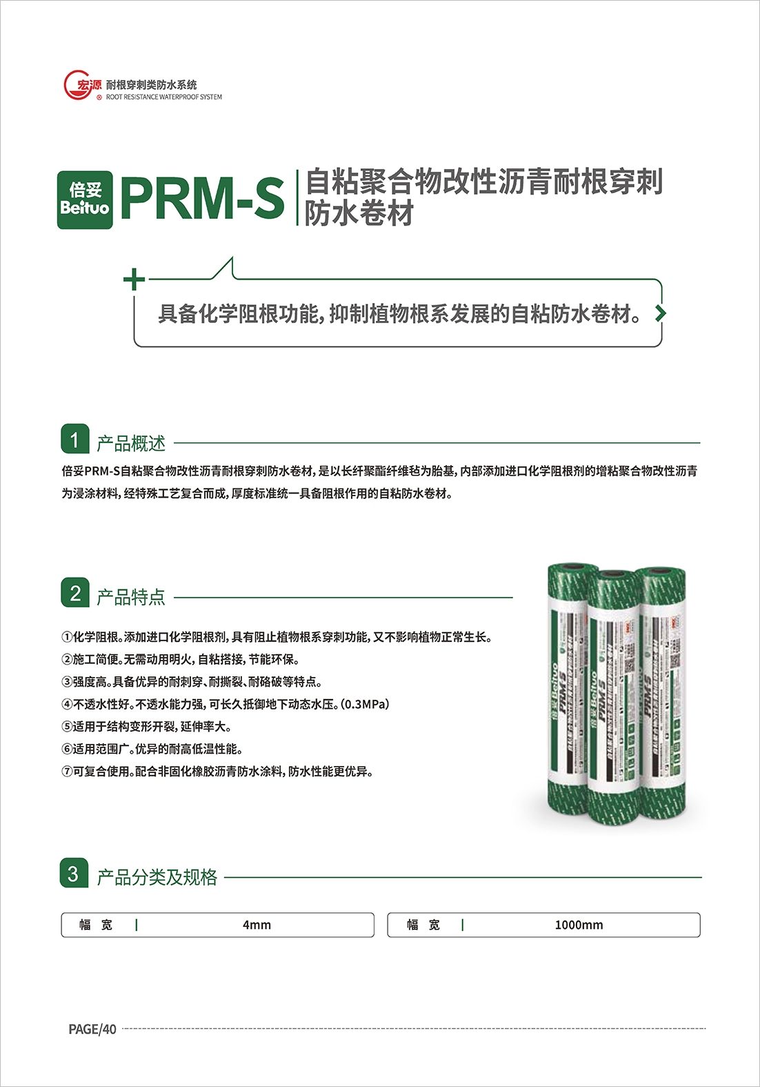 PRM-S自粘聚合物改性沥青耐根穿刺防水卷材(聚酯胎)
