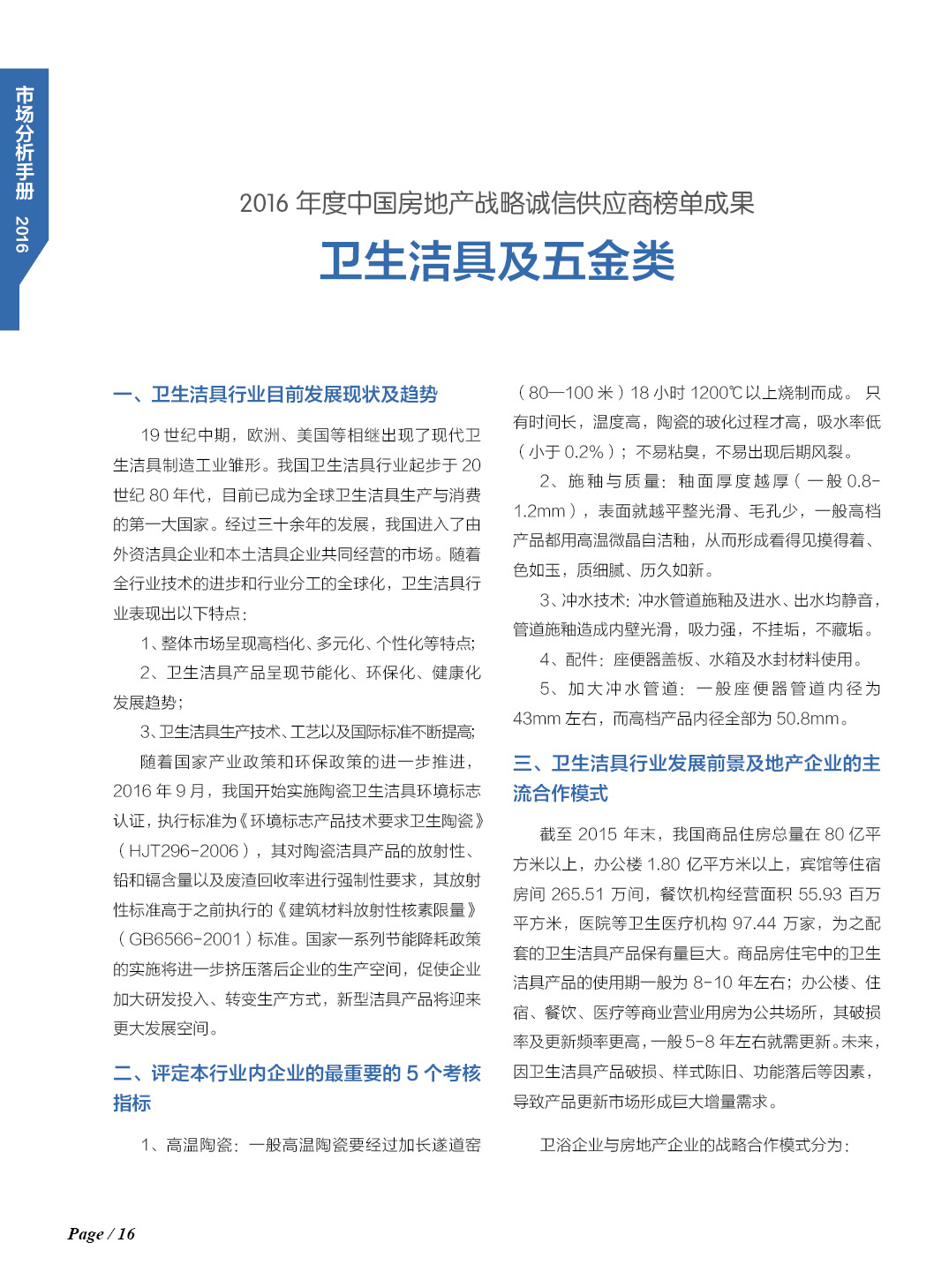 2016中国房地产产业链战略诚信供应商公益榜单市场分析手册