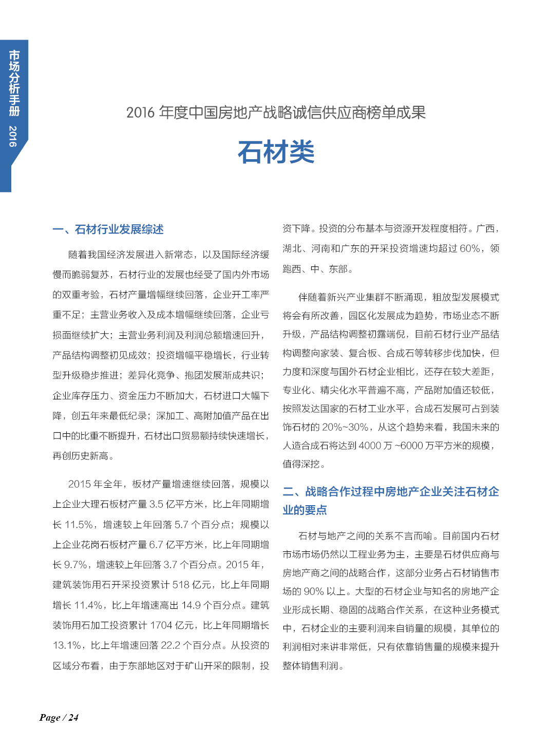 2016中国房地产产业链战略诚信供应商公益榜单市场分析手册