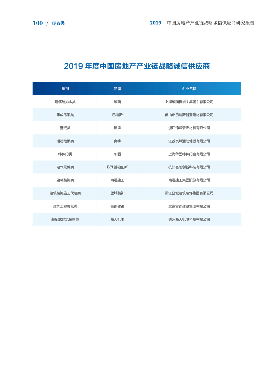 2019中国房地产产业链战略诚信供应商研究报告