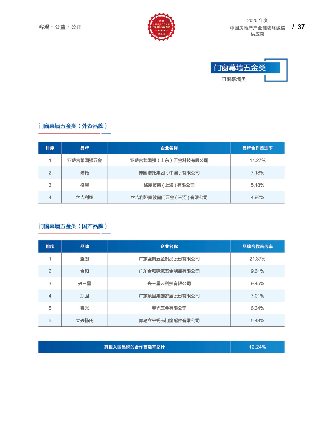 2020中国房地产产业链战略诚信供应商研究报告
