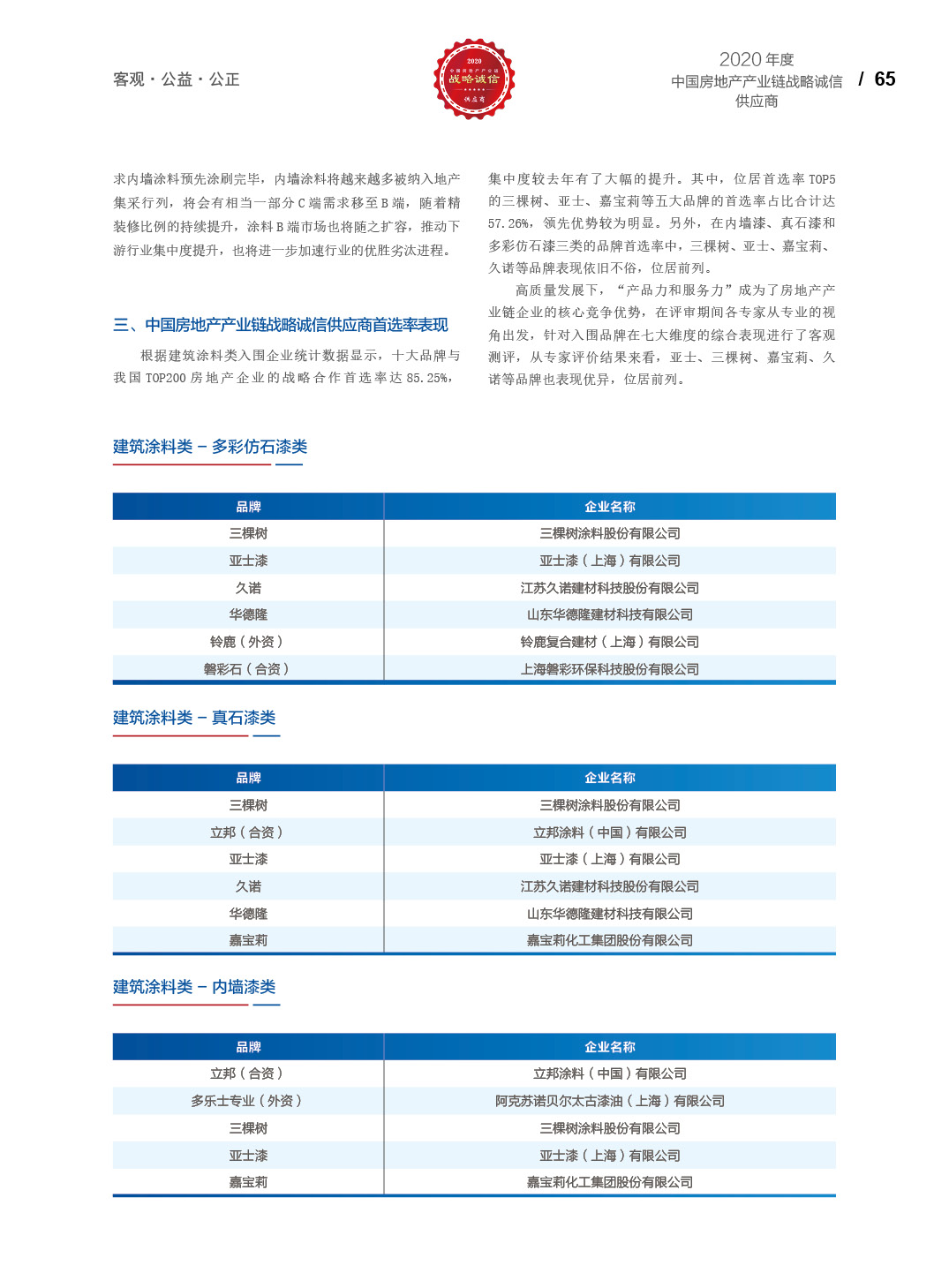 2020中国房地产产业链战略诚信供应商研究报告