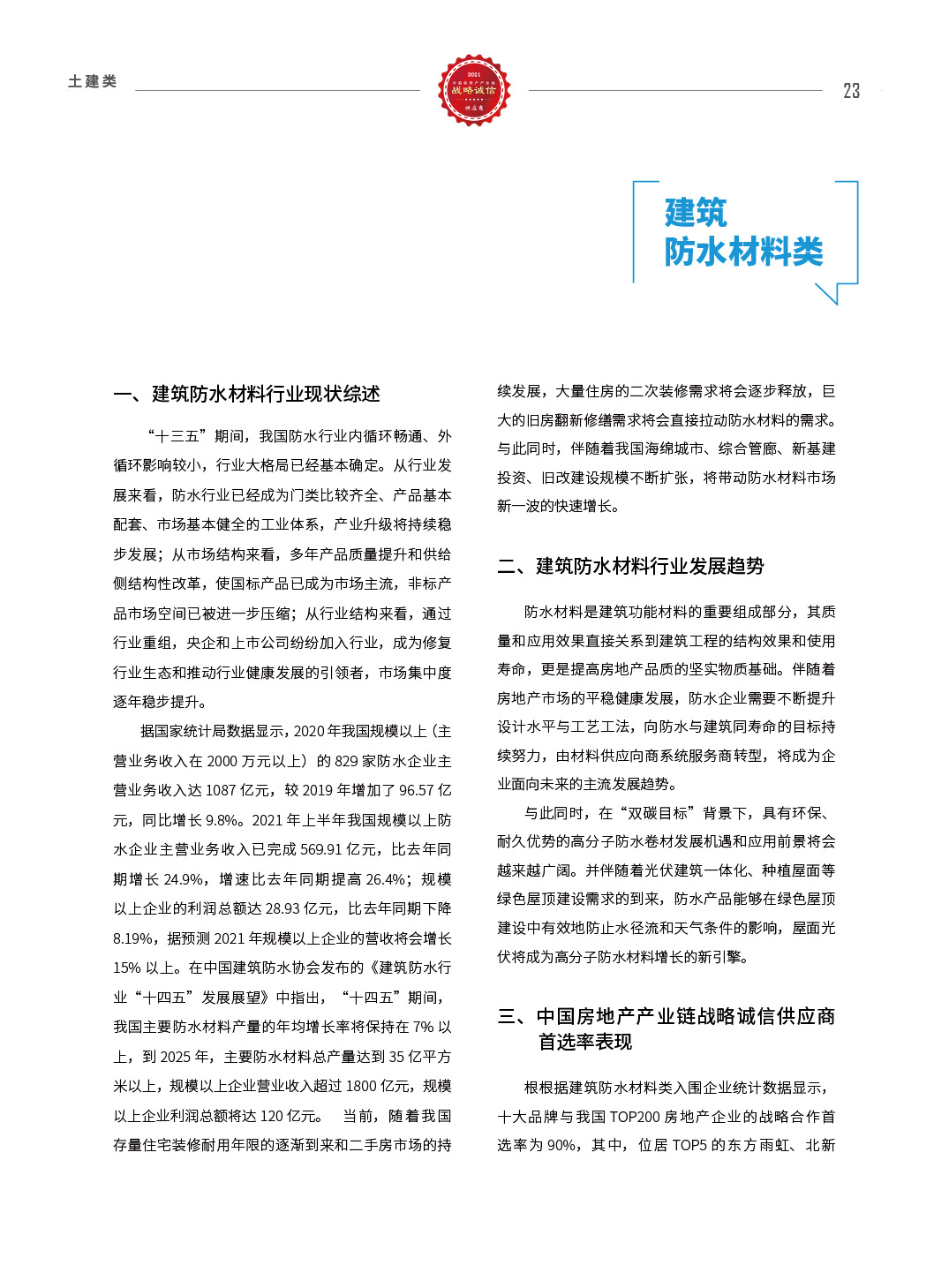 2021中国房地产产业链战略诚信供应商研究报告