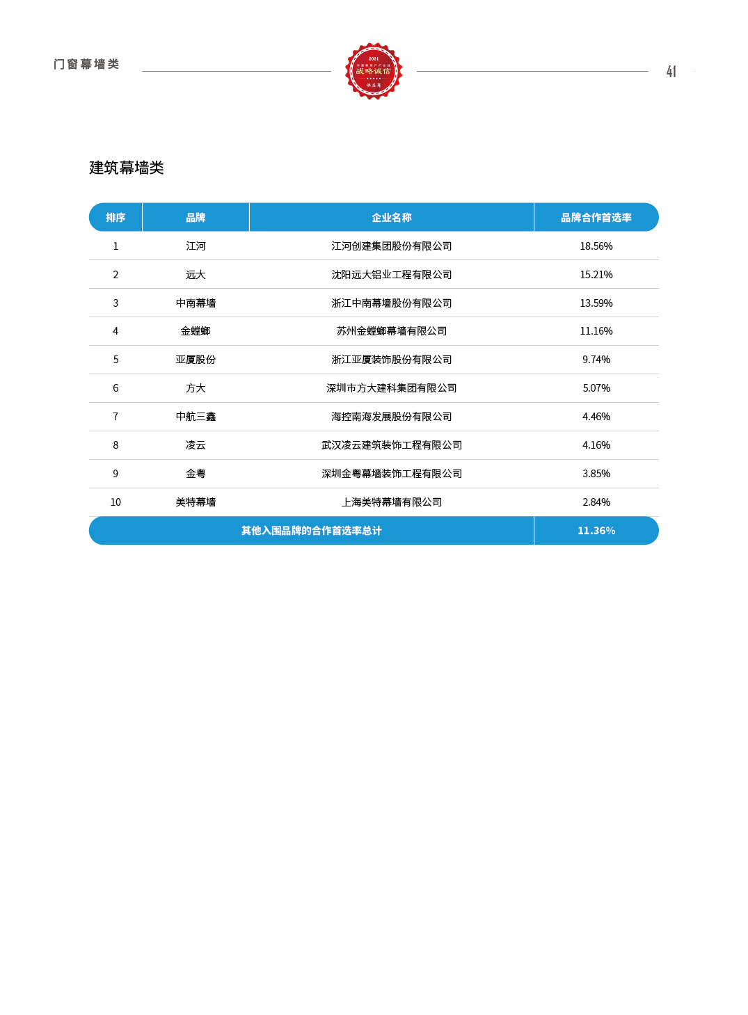 2021中国房地产产业链战略诚信供应商研究报告