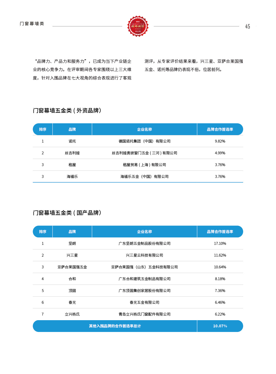 2021中国房地产产业链战略诚信供应商研究报告
