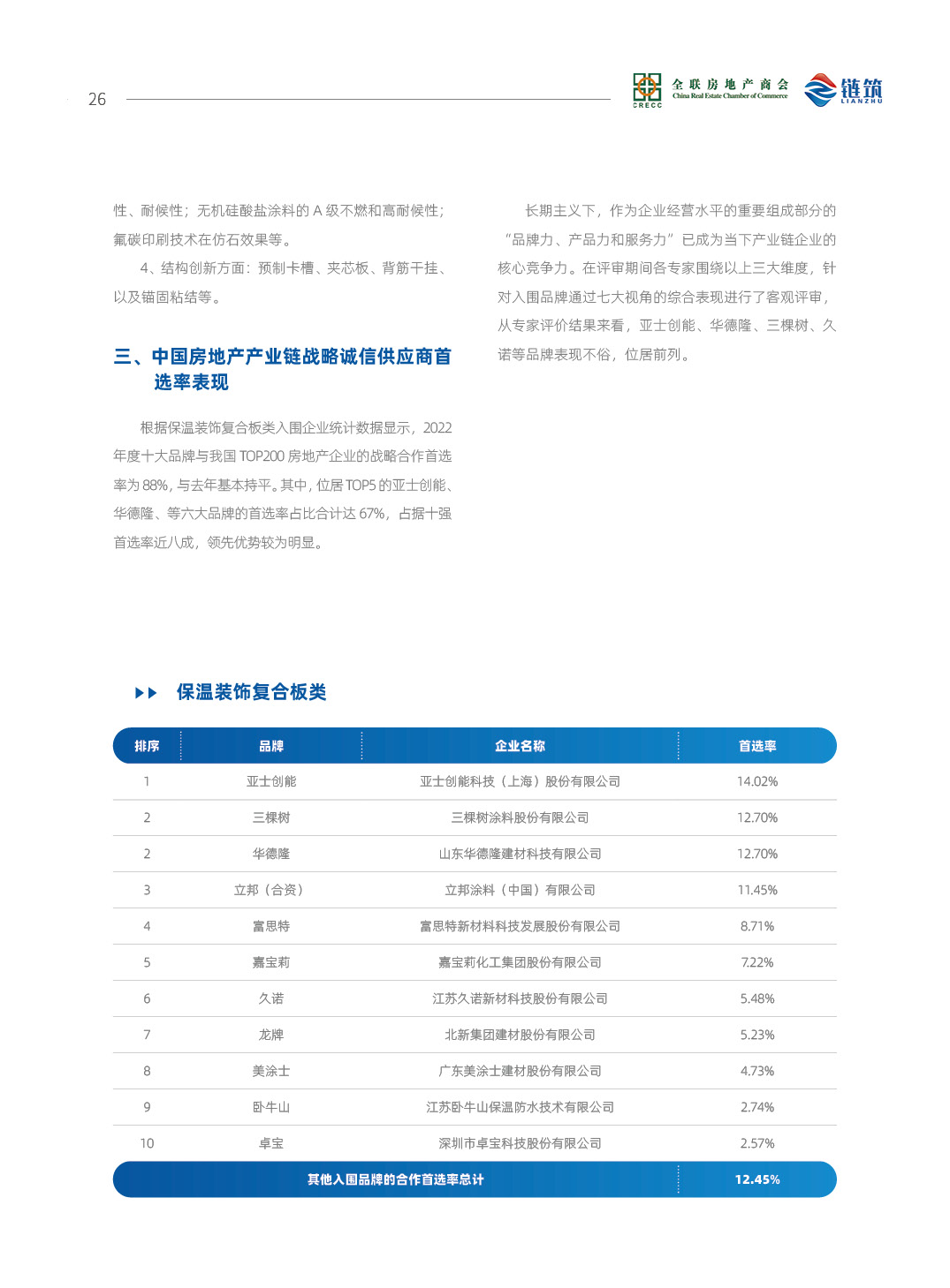2022中国房地产产业链战略诚信供应商研究报告