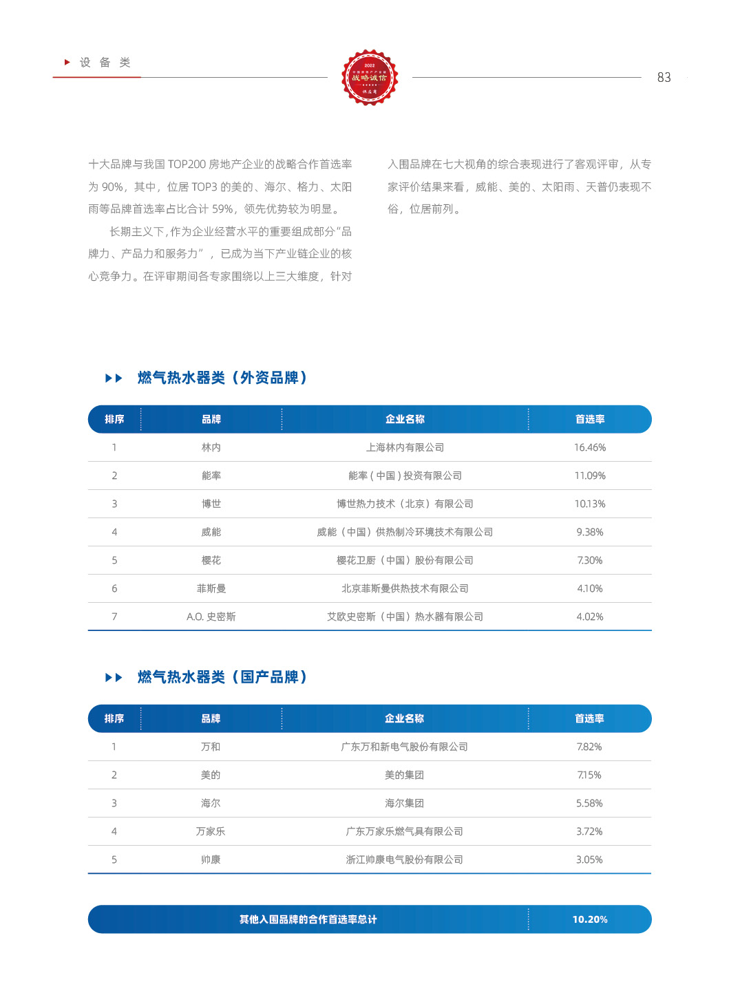 2022中国房地产产业链战略诚信供应商研究报告