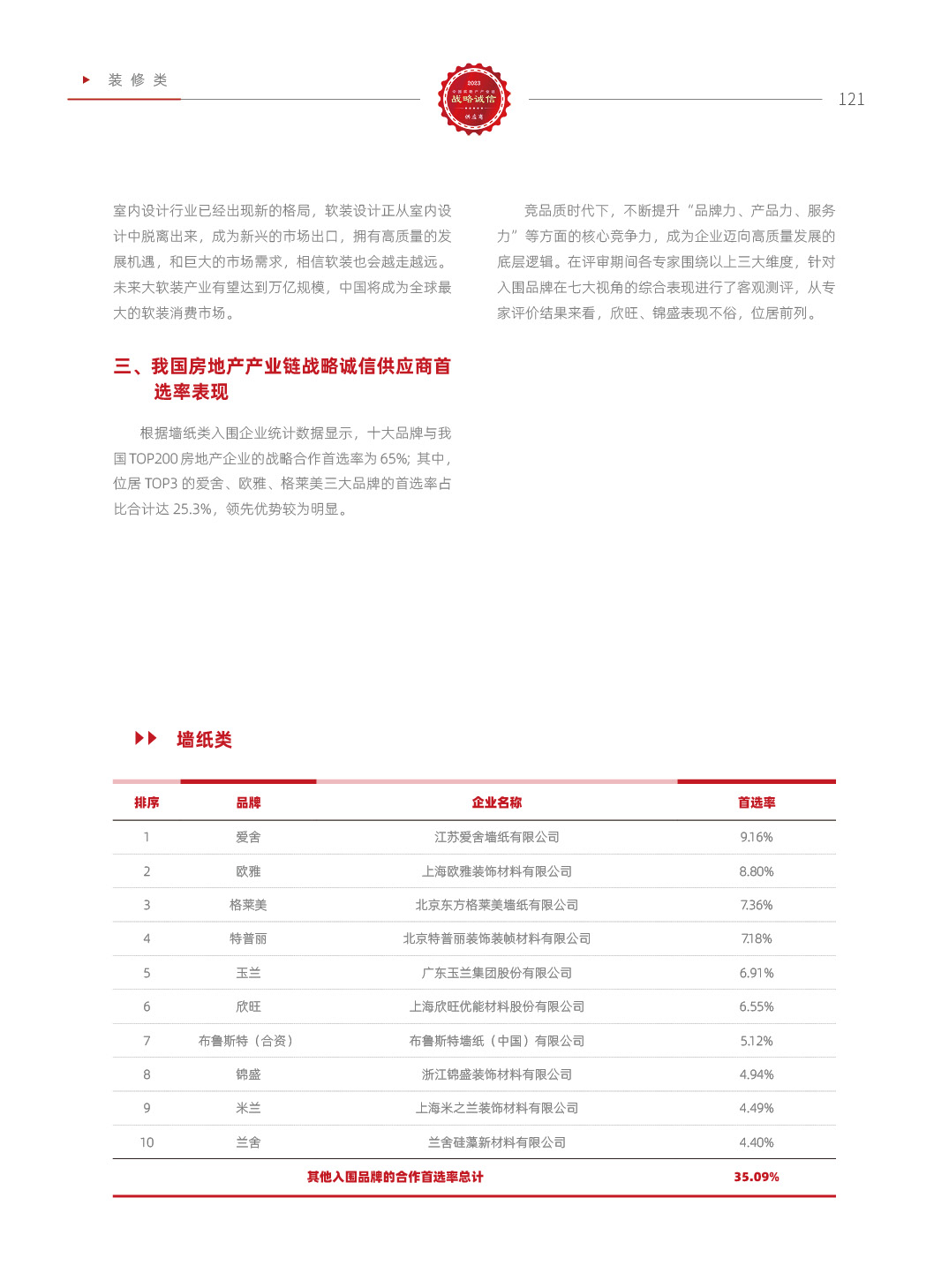 2023中国房地产产业链战略诚信供应商研究报告