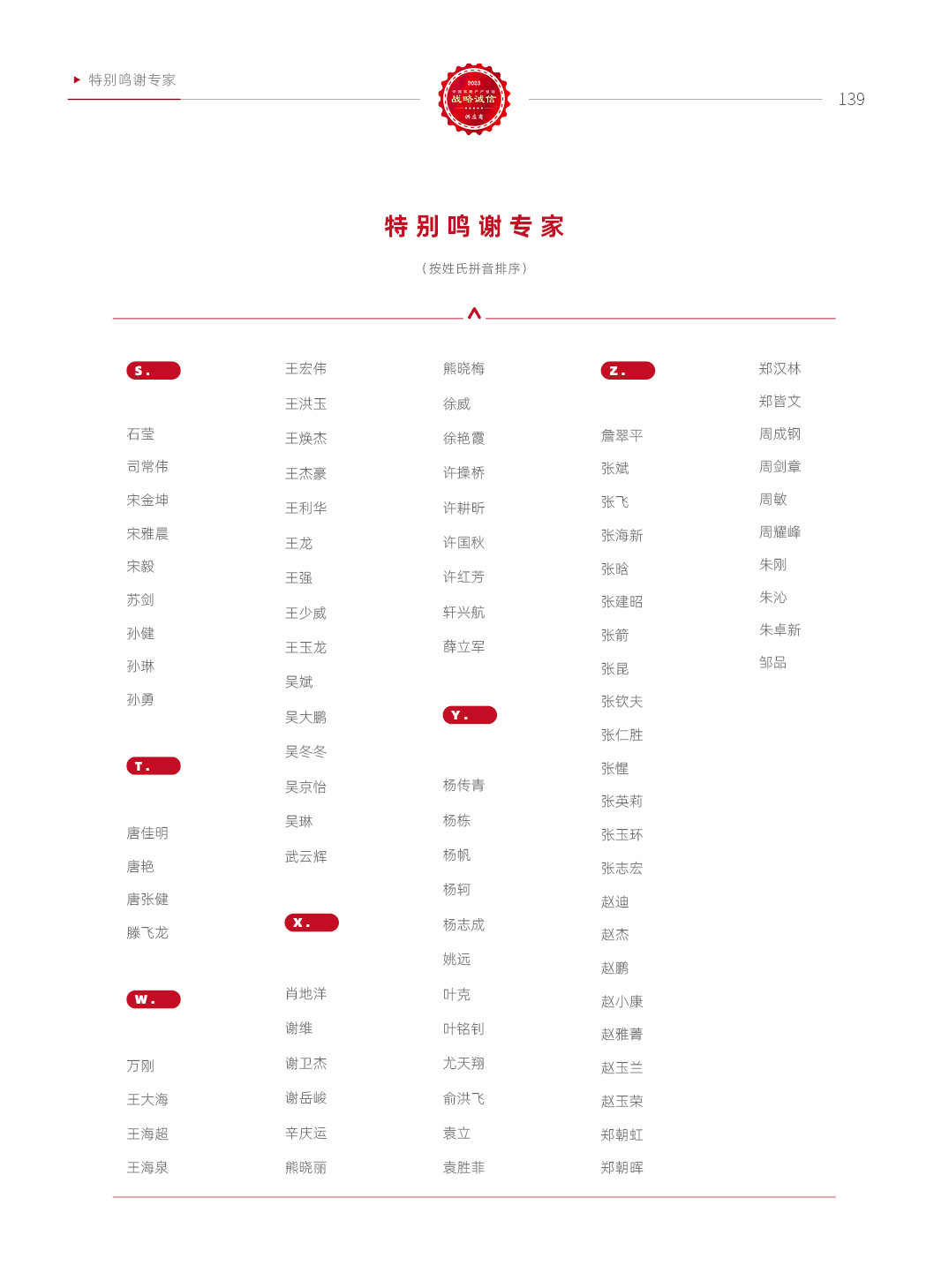特别鸣谢专家