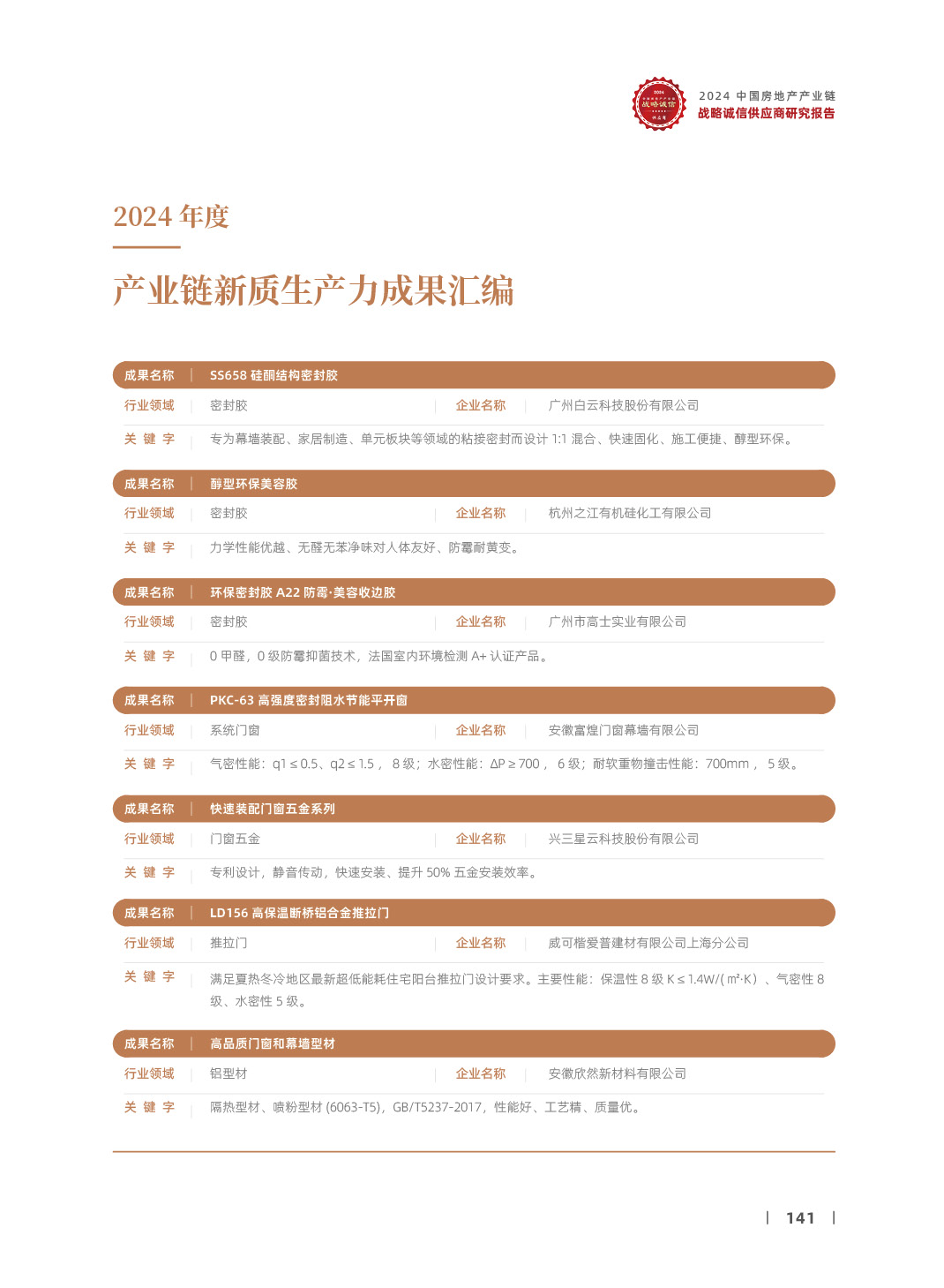 2024中国房地产产业链战略诚信供应商研究报告