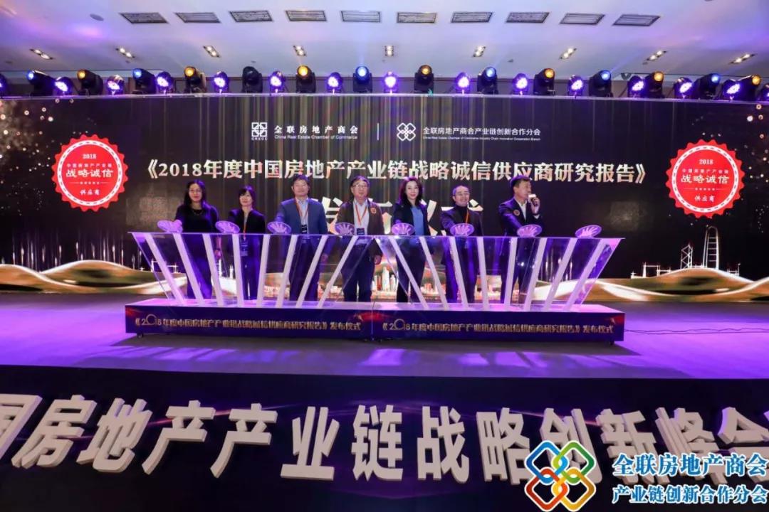 备受瞩目的《2018年度中国房地产产业链战略诚信供应商研究报告》发布环节,首先由全联房地产商会副秘书长秦晶女士作了精彩致辞,秦秘书长表示,房地产产业链战略诚信供应商年度研究报告已受到广大房地产企业主管工程和招采等相关人士的广泛关注,并已成为商会众多会员和房地产企业选择战略合作供应商的重要参考标准。通过广泛征寻5000余家会员企业以及产业链创新合作分会200余位房地产企业专家团的意见建议, “公开、公平、公正”的对中国房地产产业链的优质供应商进行全方位的公益成果展示,弘扬诚信,传递正能量,引领行业向健康、高层次发展。并由刘哲秘书长、张晓梅会长;刘洪玉老师、陈啸天秘书长、黄娟副会长、秦晶副秘书长和马学明秘书长共同启动了《2018中国房地产产业链战略诚信供应商研究报告》的发布仪式。