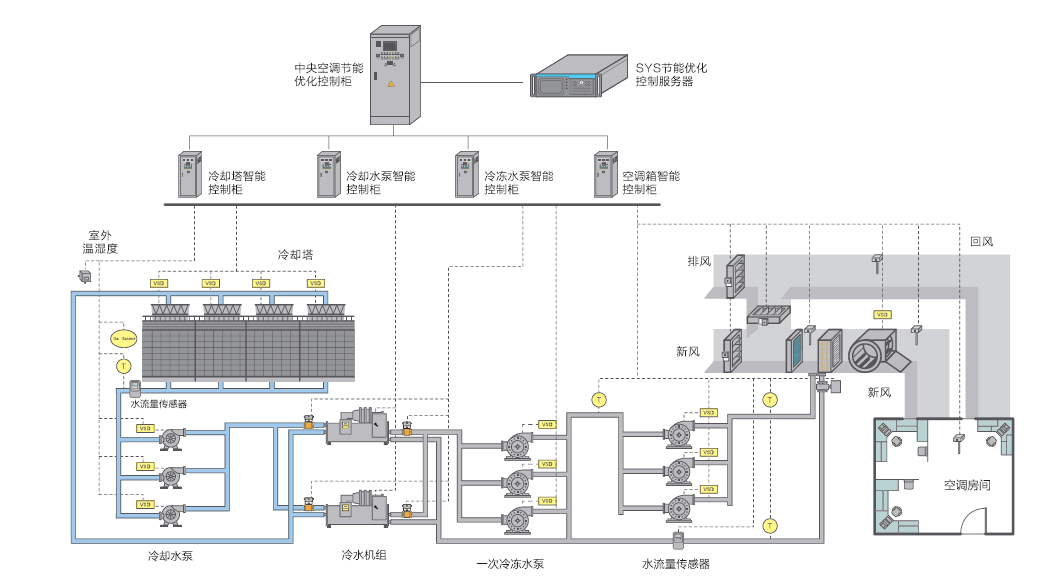 而我们这一块的技术是联合变频控制技术,你们自己有BA,这一块不用再加。满足需求前提下,通过SYS智能“大脑”,实现基于系统整体优化的各设备的联合变频控制;自学习型智能运营管理,SYS系统在实时整体优化同时,系统自学习功能会根据前期运营特征,自动优化系统运营模式;告警与工单处理机制,提供完善的设备告警管理,内置完善告警库(130+类告警);自动生成运维工单并推送。
