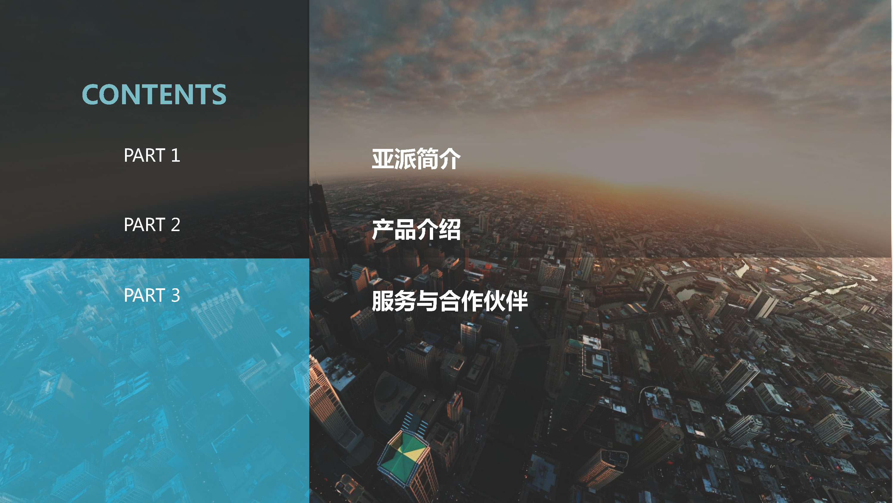 首先我从三个维度来介绍一下亚派,第一个是亚派的整体介绍,第二是亚派到底做什么,第三是亚派的服务与合作伙伴。