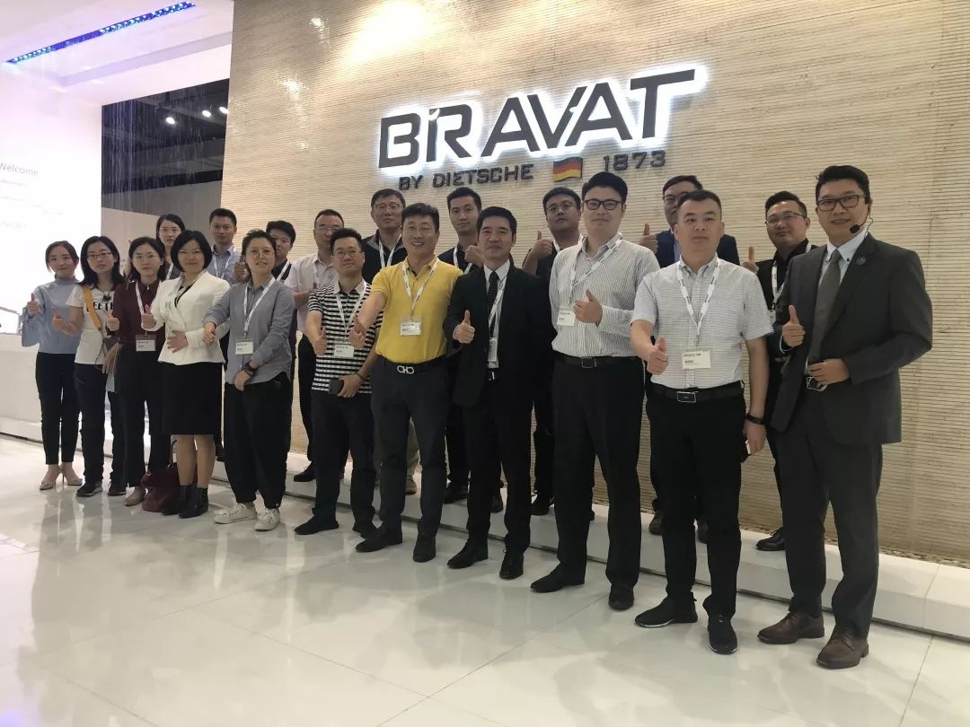 考察团一行先后来到贝朗产品展厅和生产车间。在产品展厅,设计独特、做工精致的产品夺人眼目,不同的外观造型、不同的场景应用,每一款产品都融合着艺术之美和使用价值,其中荣获iF及红点设计大奖约有100个。第一位普利兹克奖女性得主扎哈·哈迪德就曾为贝朗设计过一生中唯一一款卫浴类产品——Triflow by Bravat 龙头。