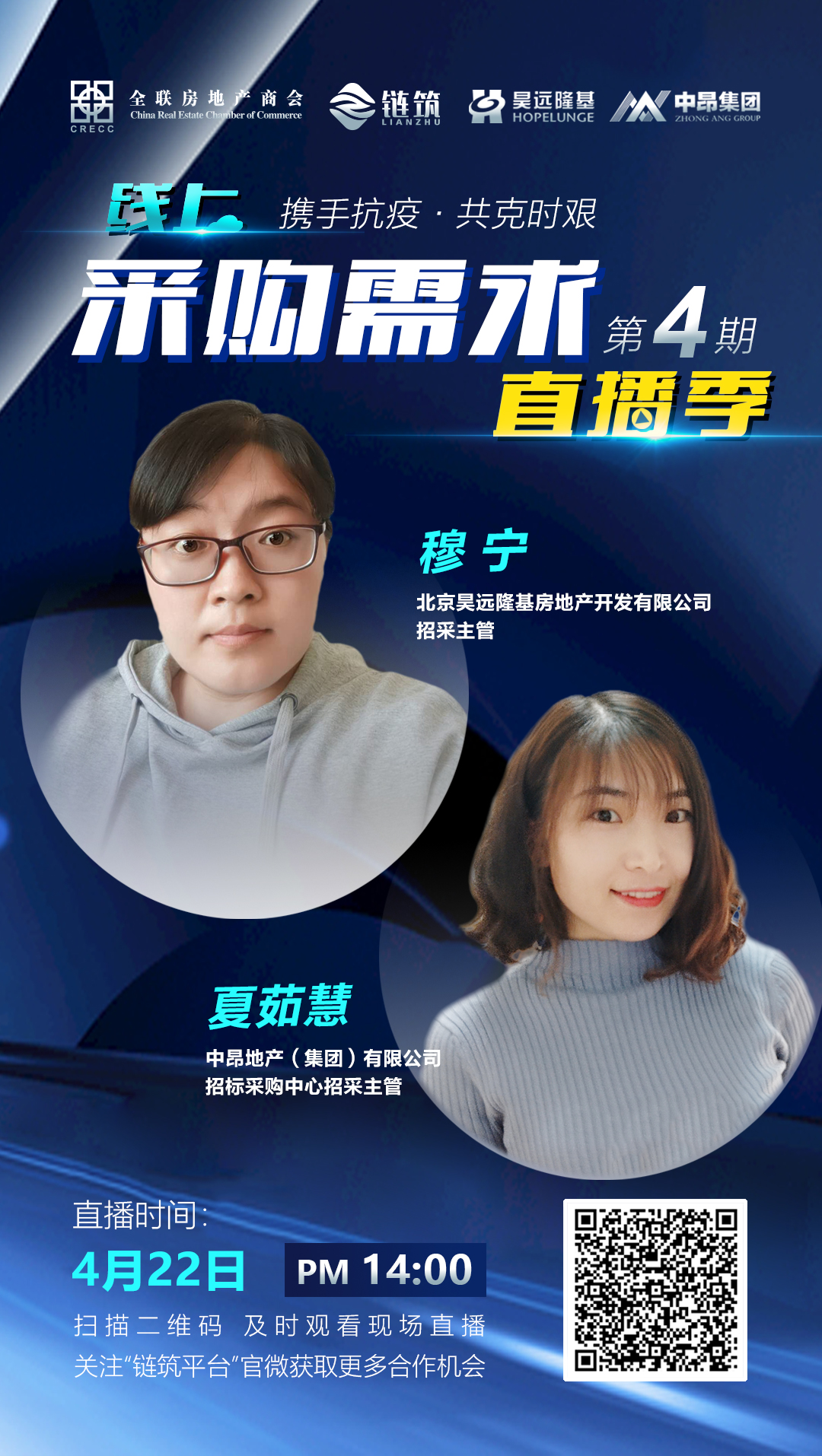 4月22日,全联房地产商会·链筑平台组织举办的“携手抗疫·共克时艰——链筑线上采购需求直播季”系列活动第4期圆满收官,4期线上直播,累计携手10大企业集团,在线实时发布410余项采购需求,涵盖房地产产业链30余个行业品类,为各产业链相关企业高效获取采购企业需求信息,采购企业精准对接更多深度战略合作伙伴,提供极大助力。