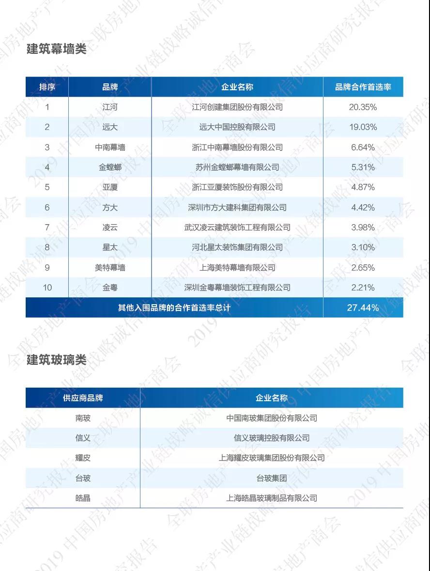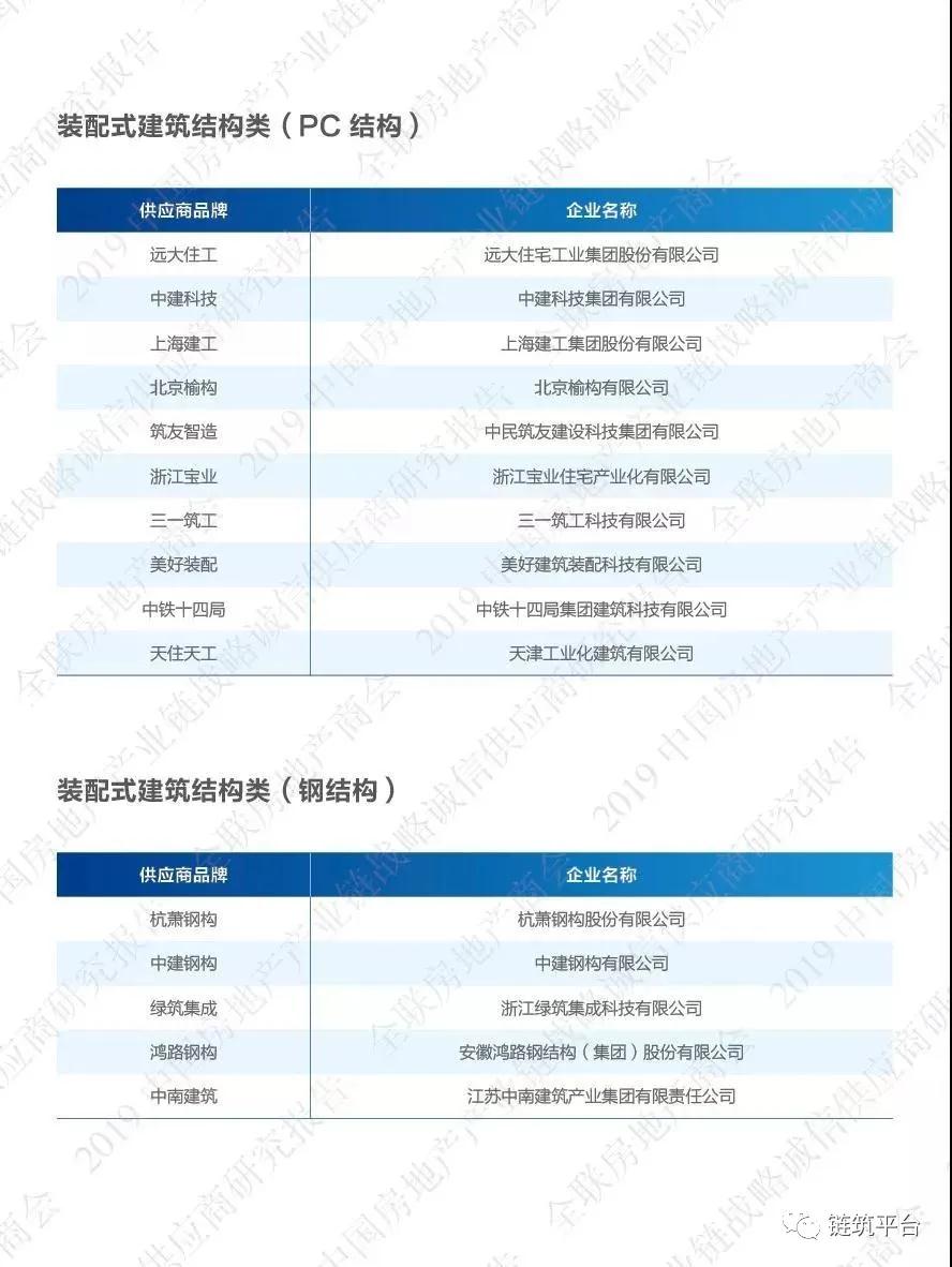 根据全联房地产商会、链筑两会发布的《2019年度中国房地产产业链战略诚信供应商研究报告》统计数据显示,与装配式钢结构产业链相关的装配式建筑结构类、装配式装修类、整体卫浴类、建筑幕墙及玻璃类、建筑门窗幕墙五金类等各领域的龙头品牌在我国房地产工程市场已占据着一定的份额,伴随着房企市场集中度的不断提升,各龙头品牌将凭借着合作项目的应用和示范,其市场份额和集中度仍将会不断攀升。