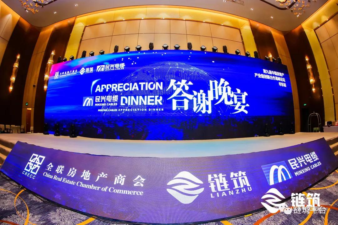 在上午的公开课、装配式建筑主题思想会、下午的高峰论坛、供需对接会等精彩环节之后,第九届中国房地产产业链创新合作高峰论坛(华东站)——“民兴电缆”答谢晚宴在华丽的开场表演中拉开帷幕!