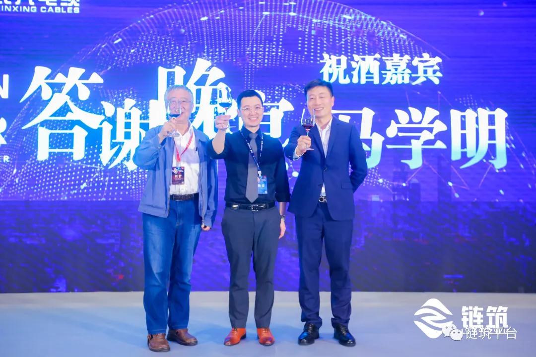 全联房地产商会顾问、原中国建筑金属结构协会秘书长刘哲先生;全联房地产商会副秘书长、产业链创新合作分会秘书长马学明先生;东莞市民兴电缆有限公司总经理、执行董事杨彦先生,共同为今天的民兴电缆答谢晚宴祝酒。