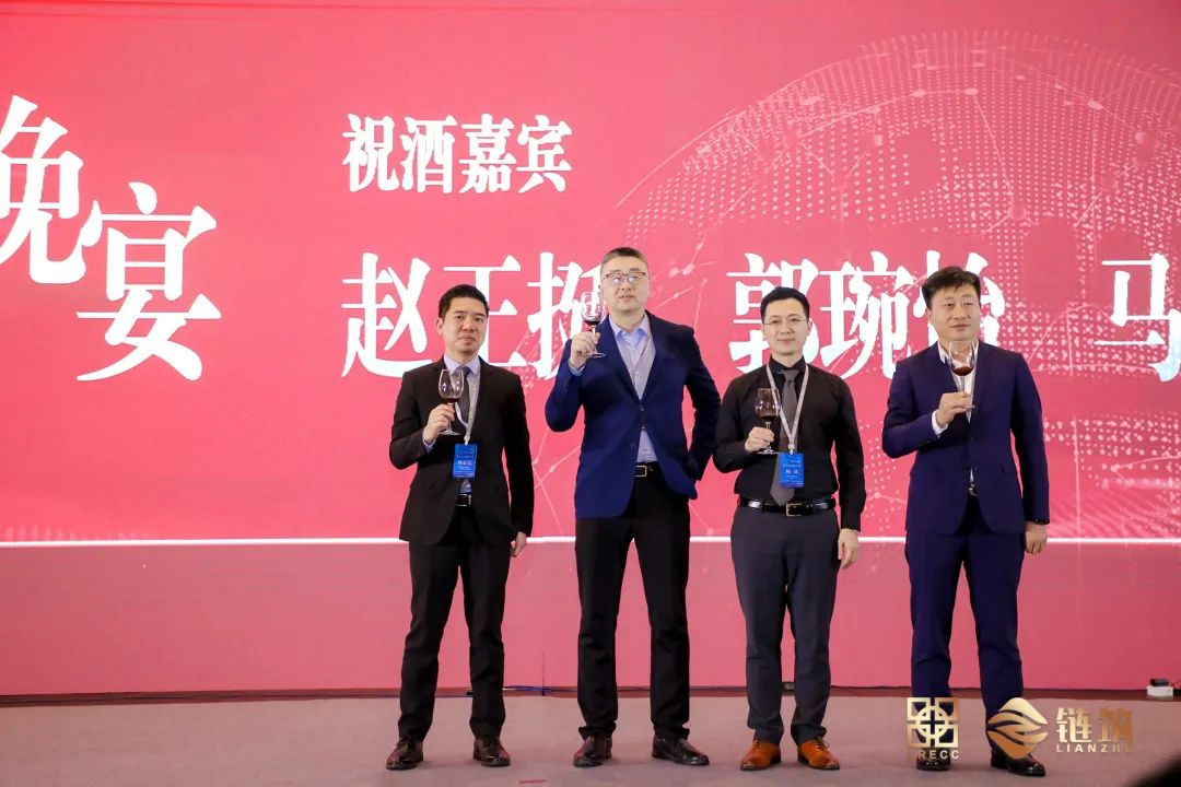 全联房地产商会党支部书记、 秘书长赵正挺先生;全联房地产商会建筑工业化分会副会长单位、德国贝朗(中国)内装运营中心总经理唐志文先生;全联房地产商会副秘书长马学明先生;东莞市民兴电缆有限公司总经理杨彦先生共同为今天的民兴电缆答谢晚宴祝酒。