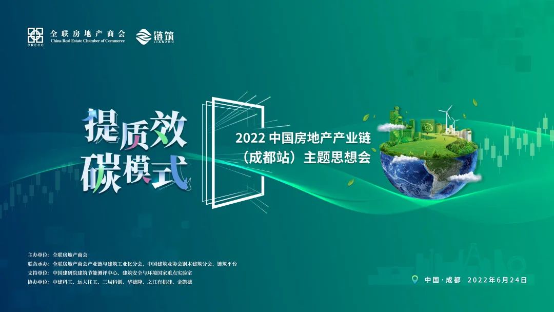 因此,为加强房地产产业链间的交流与互动,推动行业探索新的发展模式,6月24日全联房地产商会产业链与建筑工业化分会组织召开了此次“绿·质效;碳·模式——2022中国房地产产业链(成都站)主题思想会”,旨在聚焦绿色产品落地应用·产业链企业协同发展模式的交流与探讨。