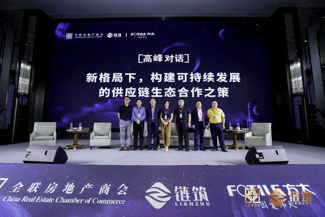 本次高峰对话由全联房地产商会链筑分会主席团专家、深圳益田地产集团副总裁张雪松先生主持,邀请到全联房地产商会会长单位、链筑分会主席团专家、富力集团材料公司常务副总经理王强先生;全联房地产商会链筑分会主席团专家、雅城科技集团成本合约中心副总经理王洁女士;中海地产领潮供应链公司副总经理端木颖新先生;全联房地产商会产业链与建筑工业化分会副会长单位、君诚管道销售集团总经理高洋先生;全联房地产商会产业链与建筑工业化分会副会长单位、江西奋发集团有限公司销售总监张家发先生一同上台交流。