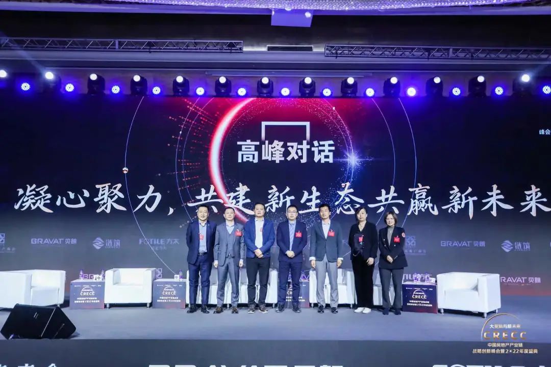 在以“凝心聚力,共建新生态共赢新未来”为主题的高峰对话环节,新城控股集团合约规划中心总经理葛明锋先生;大悦城控股产品中心副总经理马明军先生;中国金茂招采负责人李灏女士;卓越集团成本采购中心副总经理王海超先生;南京亚派科技股份有限公司副总经理徐晓琴女士;亚萨合莱(中国)投资有限公司盼盼及耶鲁中国全国战略销售总监聂洪波先生以及特邀主持人全联房地产商会副秘书长、链筑分会秘书长马学明先生一同上台围绕主题展开讨论。