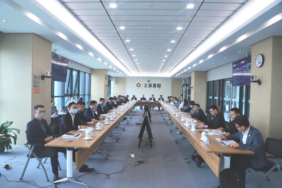 在主题交流会正式启幕前,参会嘉宾首先来到北新建材总部参观文化园和展厅,近距离了解绿色新材料智能制造和新时代高性能绿色智能建筑体系,感受北新建材开放融合的企业文化,并与北新建材负责人就绿色建材发展进行深入交流。