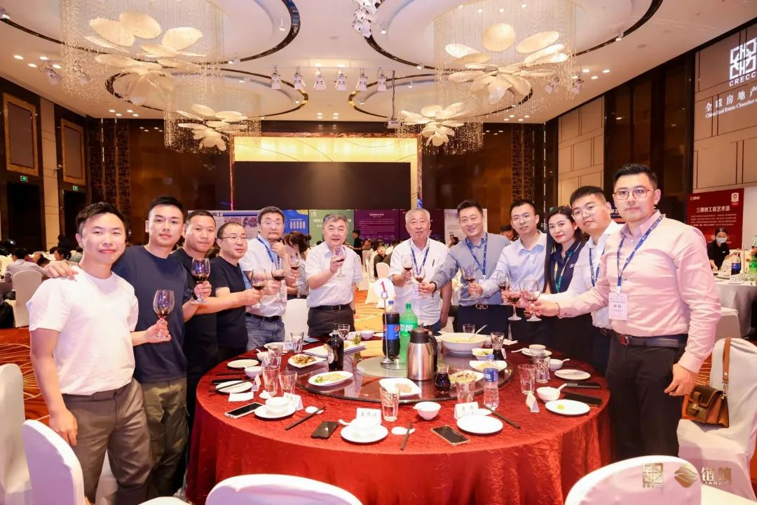 住建部市场监管司原副司长、全联房地产商会链筑分会战略发展顾问刘哲先生;中国建筑业协会钢木建筑分会常务副会长党保卫先生;上海市金属结构行业协会秘书长卢定先生;全联房地产商会链筑分会副秘书、上海城投集团重大办市重点工程项目总鲍磊先生;全联房地产商会链筑分会 副秘书长李守飞先生、副秘书长陈敏先生、副秘书长张旭先生以及全联房地产商会副秘书长、链筑分会秘书长马学明先生共同为华东站论坛答谢晚宴祝酒。