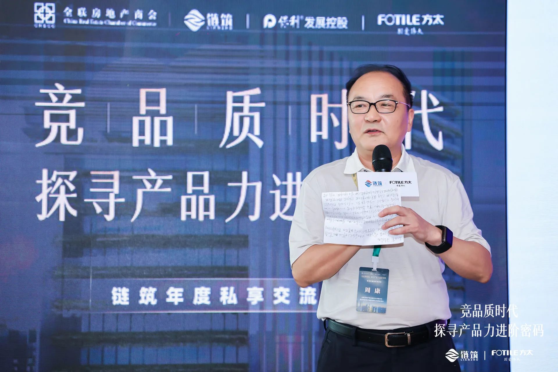 全联房地产商会链筑分会副会长、保利湾区投资发展有限公司原董事长周康先生在致辞中寄语到:“品质时代下,房地产市场进入了买方时代,客户在房屋品质、功能、环境、配套和服务等方面都还存在诸多改善诉求。如何更好地发现并满足这些需求,将是房企接下来要解决的重大课题。