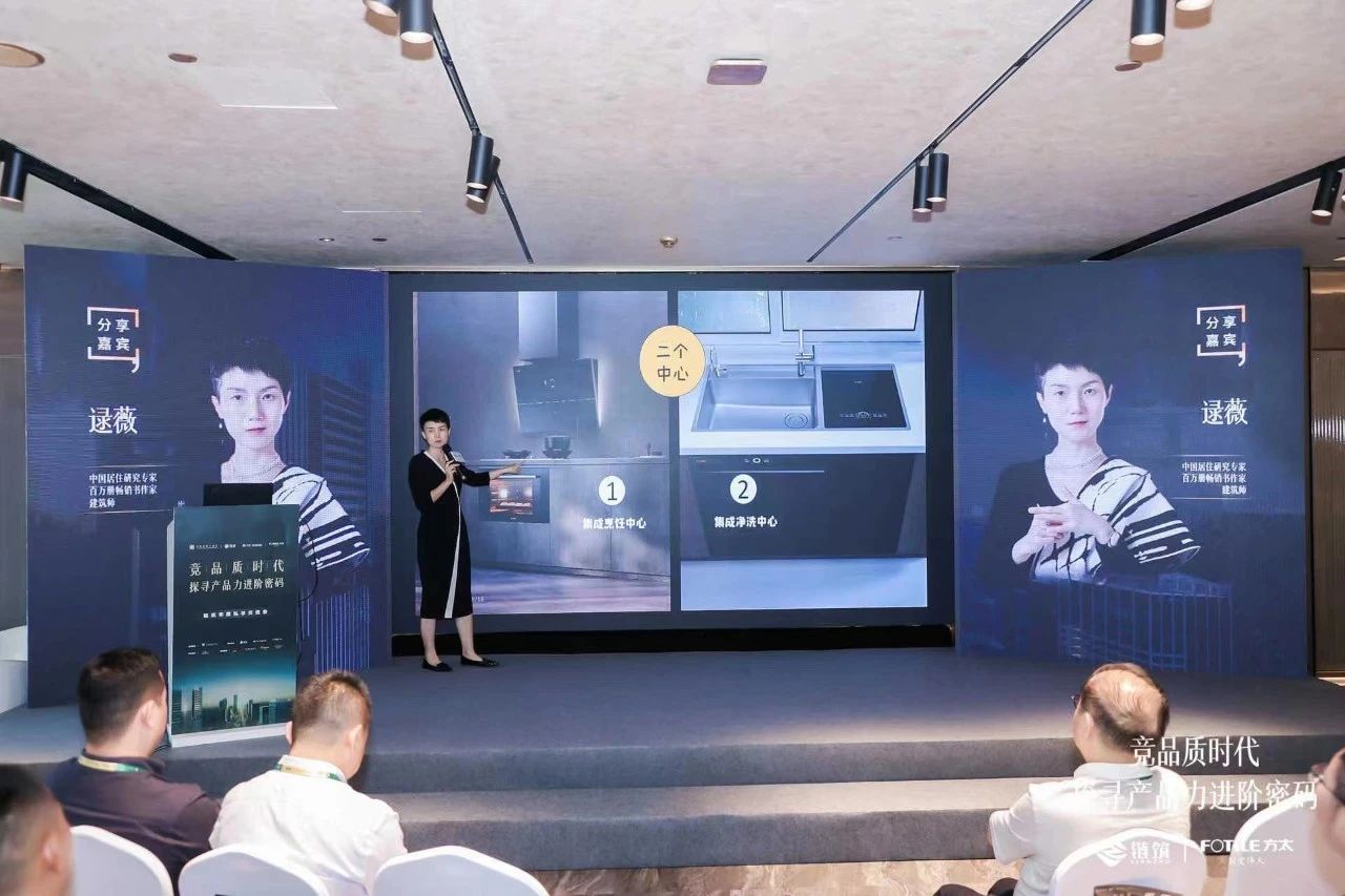 进入品质时代必然要有品牌思维,产品力、服务力是品牌力和销售力的基础,以客户为中心,打造“始于客户研究、终于客户体验”的产品服务体系,把更好的服务品质贯穿到销售交付的全周期,才能时刻与我们的客户保持长期良性互动。在此次分享中,国贸地产集团产品中心总经理刘菁先生,以国贸天琴樾·第四代建筑为例,强调市场从来不缺呼应时代的产品,因为对标复制或学习总是相对容易的;市场缺的是满足人民更高需求的作品,这必须走别人没有走过的路,刘总以厨房空间为例指出,与其一味地选择国外高端品牌对标复制别人,不如联合中国品牌——方太,从满足国人饮食起居、厨房使用需求入手,从科技创新、使用习惯、外观设计、空间利用率等多角度打造符合国人高层次需求的全屋性能最优方案。