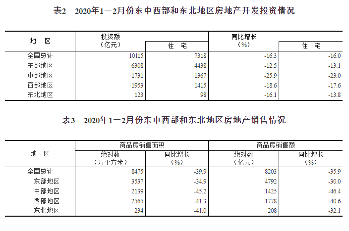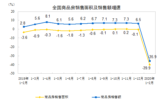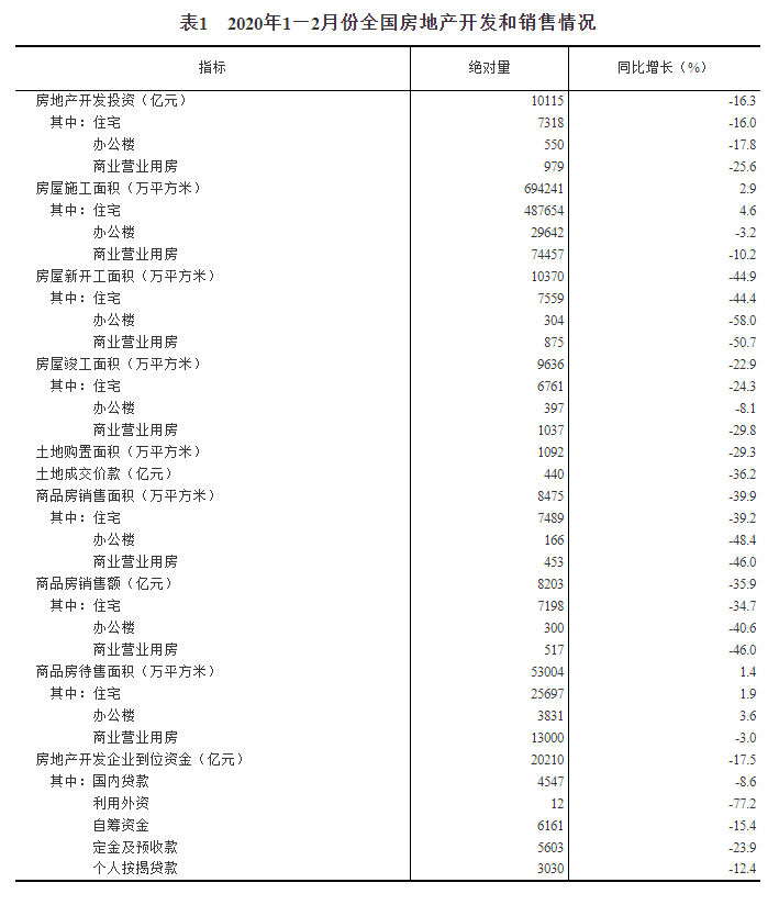 2020年1—2月份全国房地产开发投资和销售情况-链筑平台