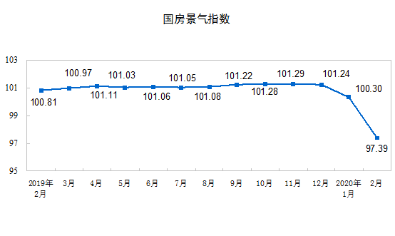 2月份,房地产开发景气指数(简称“国房景气指数”)为97.39。