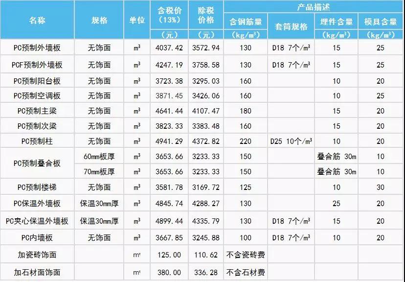 行业 | 2019年04月上海PC预制构件信息价发布