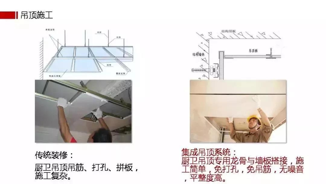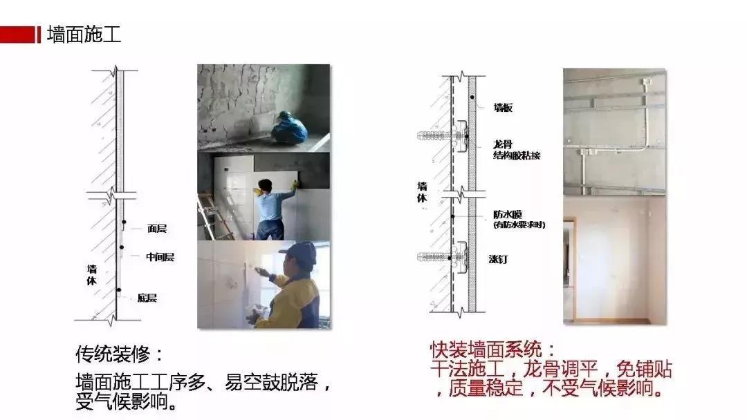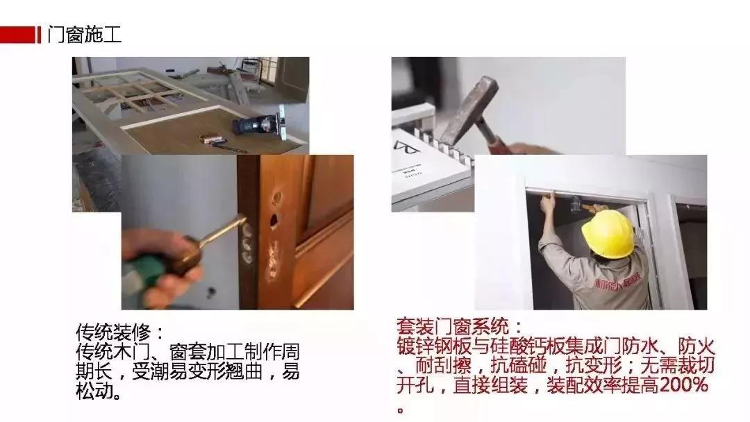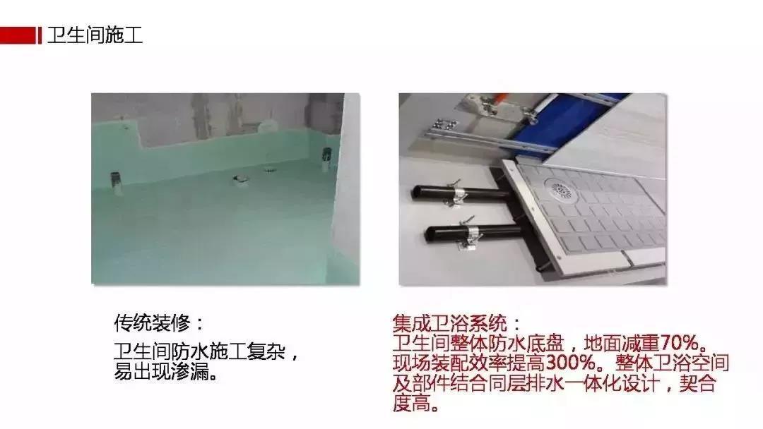 概念喊得再响也没有用,消费者关注的是体验。相对传统装修,装配式大幅提升了从设计、生产、装配、售后维修到二次装修的全流程效率。传统湿法作业容易出现空鼓、开裂、漏水,精度差、质量不容易控制。而装配式的精细化生产,能大大降低施工误差。从品质上提升装企口碑,降低售后服务成本。标准化流程让施工透明、质量可控;重点是在防火、防潮、保温隔热等性能上有更优异的表现。标准化装配式施工效率高,且工厂现场两地同步进行,工期可缩短70%以上。传统装修三四个月的工期,装配式30天就能完成,提升了装企同期运作多个工地的能力。