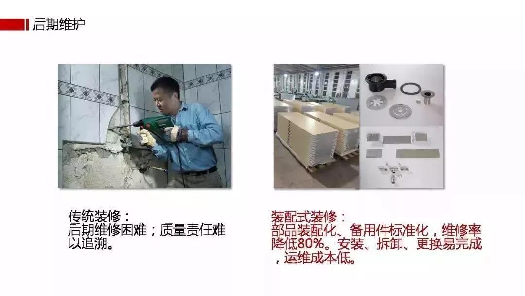装配式装修可快速拆装、过程可逆、时间可控、运维成本更低。与传统装修模式设计-采购-施工主体多变,售后追责困难相比,更有优势。