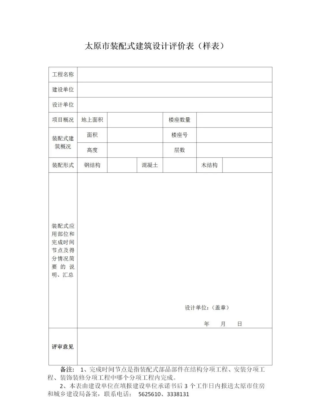 三是各相关单位职责,分别明确了建设单位、设计单位、施工单位、监理单位、预制构件生产单位职责。特别要求建设单位在填报《建设单位承诺书》后3个工作日内报送《太原市装配式建筑设计评价表》至太原市住房和城乡建设局备案。联系电话:5625610、3338131