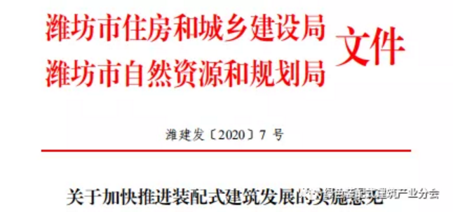 2020年4月13日,潍坊市住房和城乡建设局、潍坊市自然资源和规划局发布《关于加快推进装配式建筑发展的实施意见》,内容强调 :