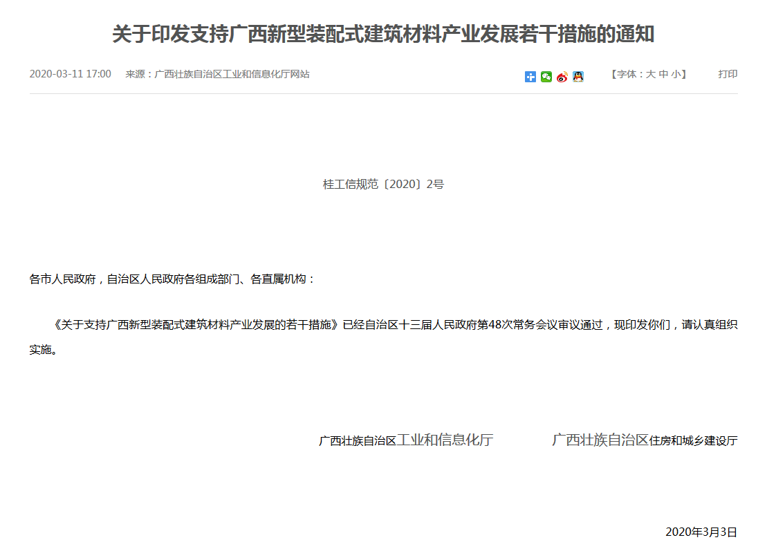 关于支持广西新型装配式建筑材料产业发展的若干措施