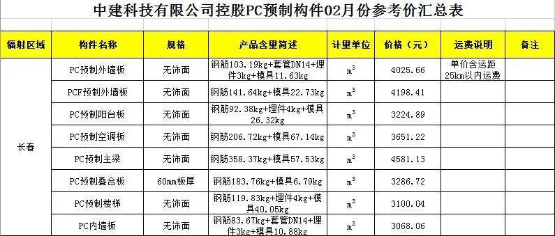 数说PC|2020年2月全国主要城市PC预制构件价格信息