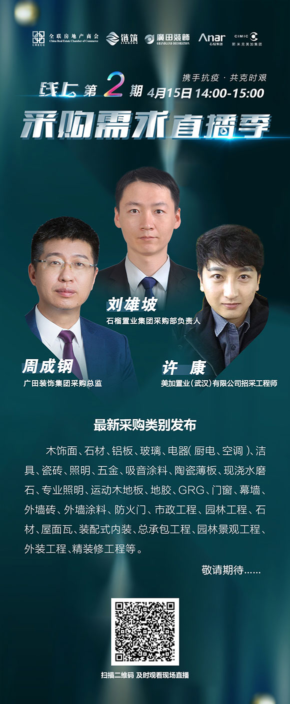 疫情影响下,房企与产业链企业信息交流的不顺畅,严重阻碍行业复工复产的步伐,为此全联房地产商会,链筑两会,充分发挥自身平台力量,利用互联网优势搭建直播平台,在4月正式启动携手抗疫·共克时艰——链筑线上采购需求直播季系列活动,将房企的线下招标搬到线上,让房企与产业链企业通过线上直播的形式,充分分享、交流供需资讯,实现采购需求的精准高效匹配。