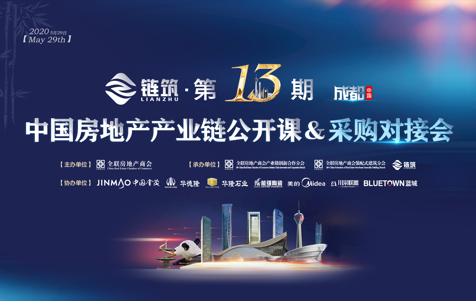 在成渝双城经济圈崛起的大背景,以及疫情后住宅建筑产品迭代升级思考课题,全联房地产商会拟定于2020年5月29日(周五)在成都召开“第13期中国房地产产业链公开课及采购对接会”活动,加强川渝房地产企业与供应链企业在区域城市化发展趋势、绿色建筑领域的交流与互动,紧抓结构性机遇,卡位重点城市群中的潜力城市,加强科学精准投资布局赢得发展先机。