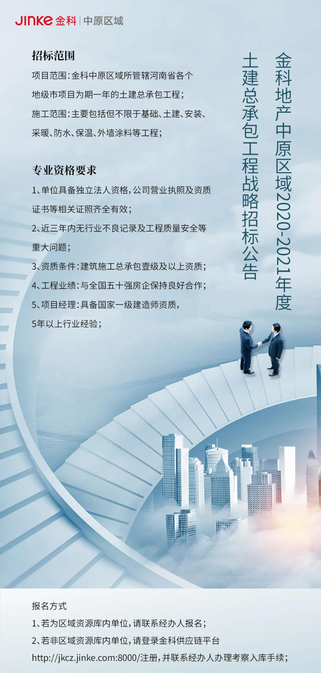 链筑网 招采信息 金科中原2020-2021年度总承包战略招标公告