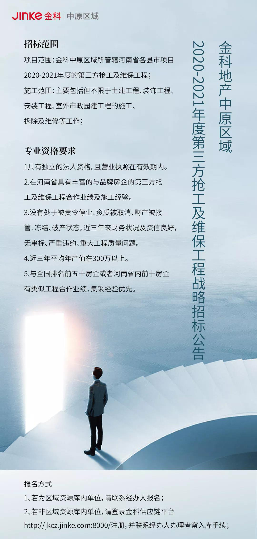 金科中原2020-2021年度总承包战略招标公告