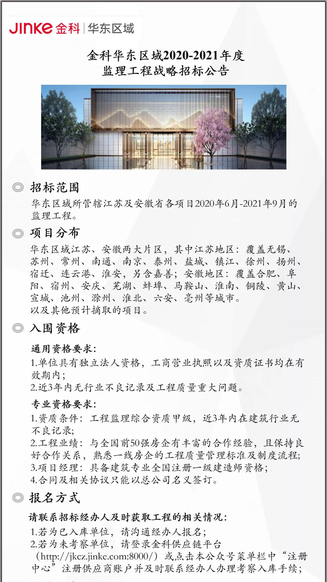 金科华东2020-2021年度总承包工程战略招标公告