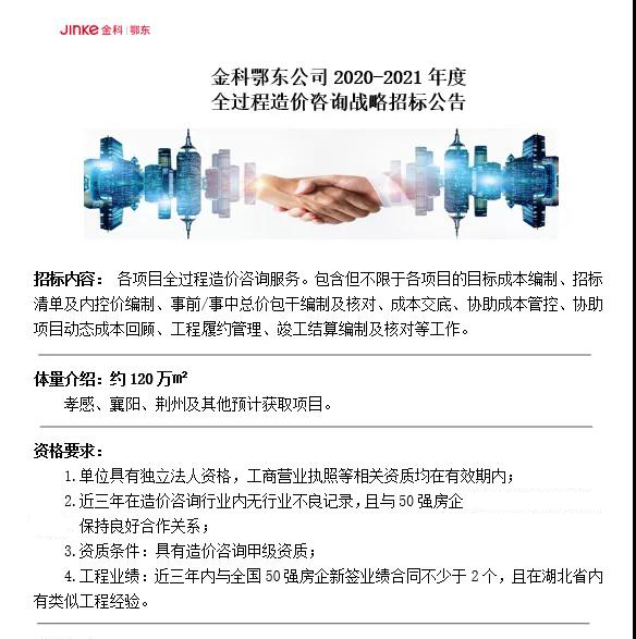 链筑网 招采信息 金科鄂东2020-2021年度全过程造价咨询战略招标公告