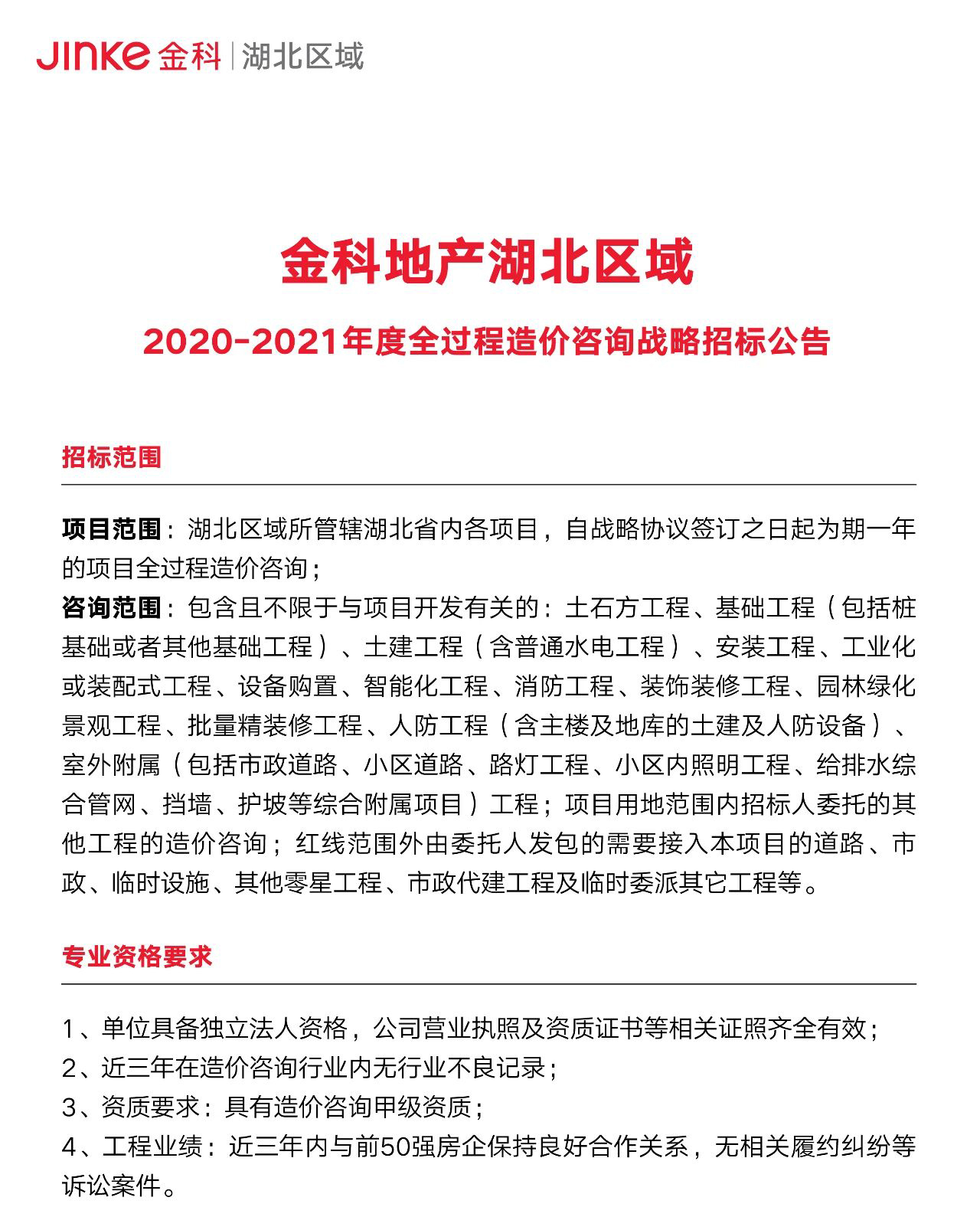 金科中原2020-2021年度总承包战略招标公告