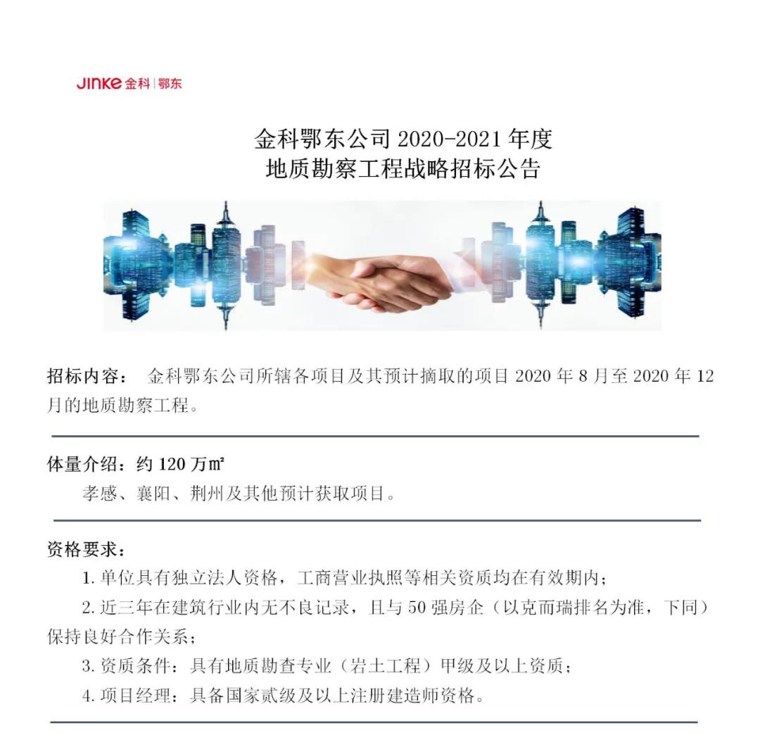 金科中原2020-2021年度总承包战略招标公告